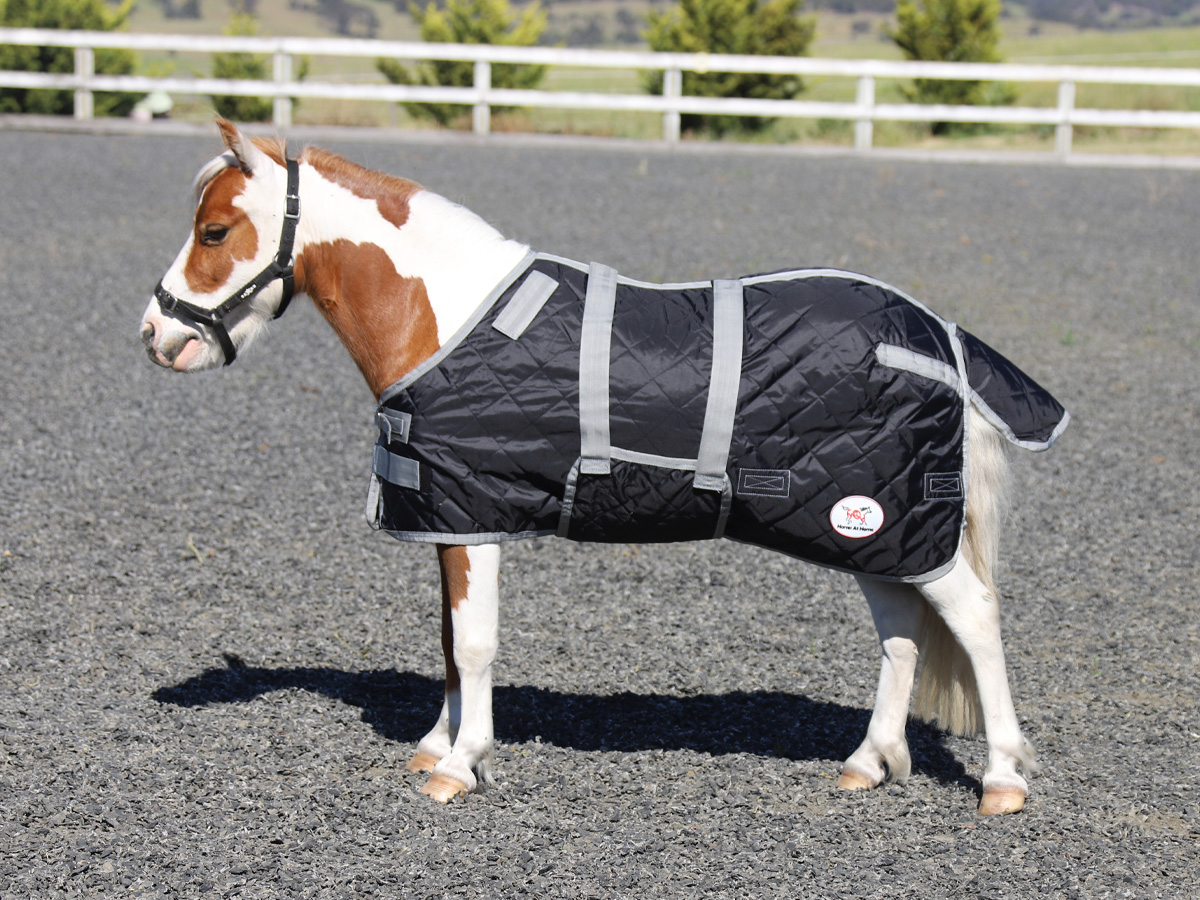 Miniature Black Quilted Doona Stable Detach-a-Neck Horse Rug 100g