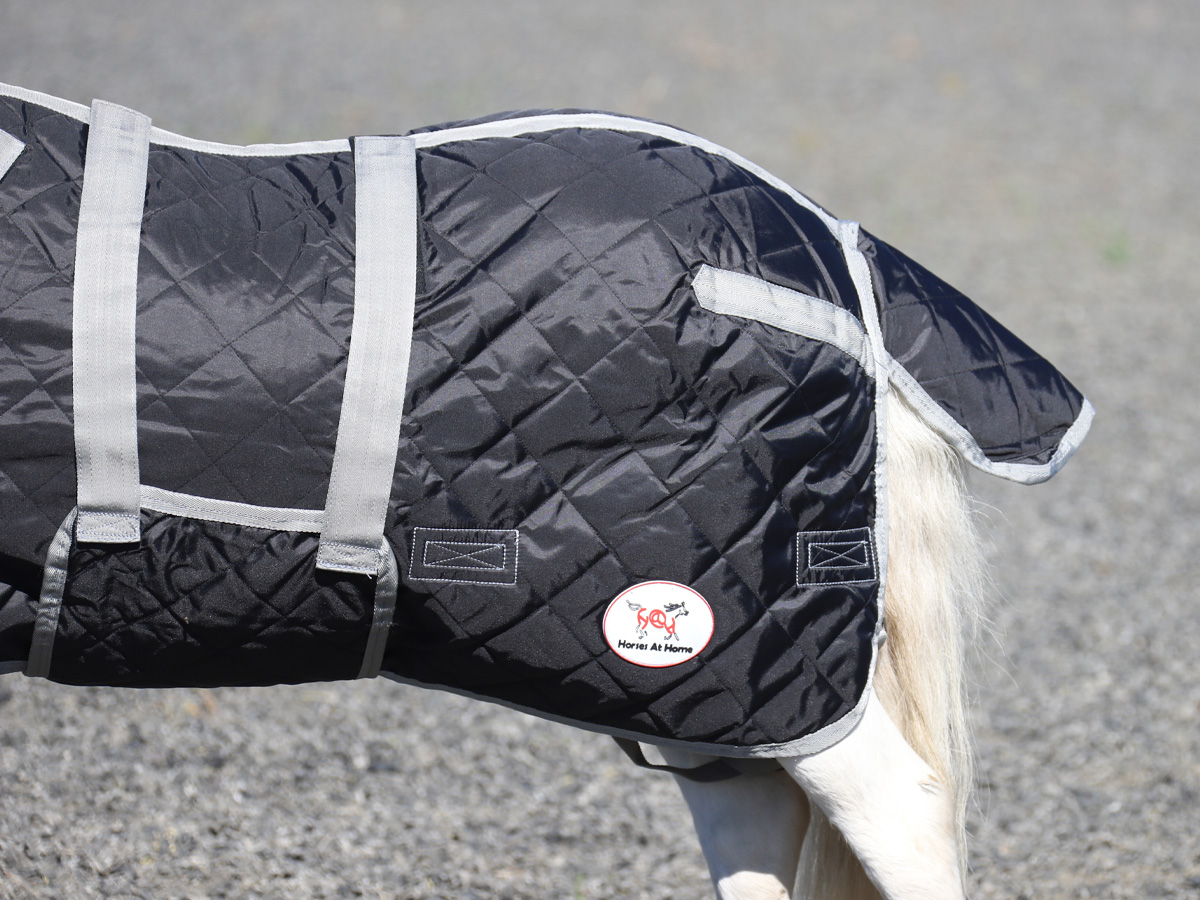 Our black with grey binding detach-a-neck miniature horse/pony stable doona has been designed for ultimate versatility and comfort in the stable.