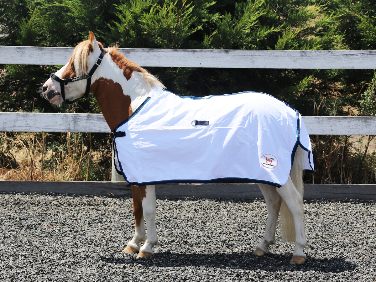 - The white fabric assists with reflecting the sun and keeping your horse cool.